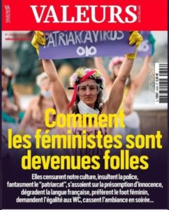 « Comment les féministes sont devenues folles ». Ce n’est pas le titre du dernier article du Gorafi, mais celui de la nouvelle une de Valeurs Actuelles. Pour appuyer le propos, la magazine écrit : « Elles censurent notre culture, insultent la police, fantasment le ‘patriarcat’, s’assoient sur la présomption d’innocence, dégradent la langue française, préfèrent le foot féminin, demandent l’égalité aux WC, cassent l’ambiance en soirée… »