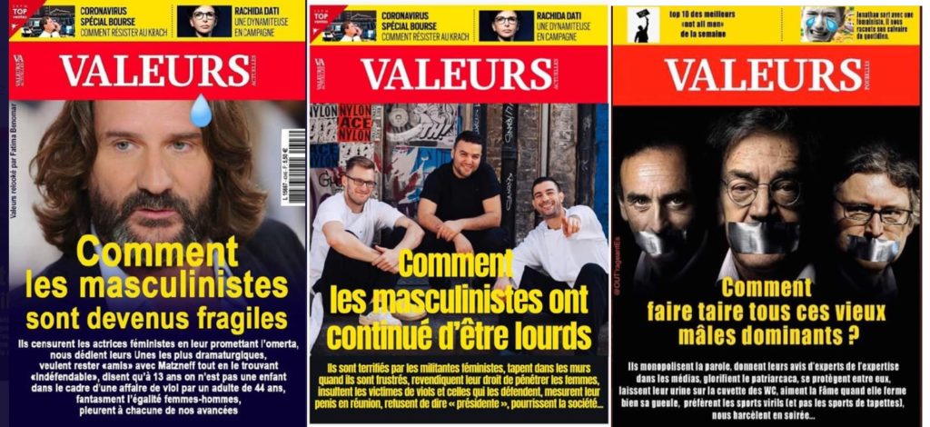 Ce n’est pas une première. En mai dernier, le même journal dénonçait ici « La terreur féministe ». Cependant, il est de plus en plus seul à oser ce type de une qui relève du révisionnisme. Sur ces discours franchement hostiles au féminisme, Valeurs Actuelles est principalement en concurrence avec le magazine Causeur. Mais il y a quelques années, c’était l’ensemble de la presse « mainstream » qui tenait des discours similaires. (Lire : Mais qui veut allumer la guerre des sexes ?). On avance…