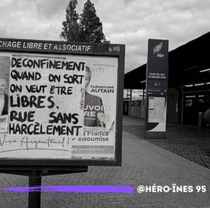 Des chiffres alarmants et un flot de témoignages de victimes ont poussé le collectif Héro-ïnes95 à agir. À la sortie du confinement est née leur campagne « Stop harcèlement de rue : Tous concernés ! ». Objectif : interpeller les collectivités territoriales et leur proposer des moyens de prévention pour lutter contre ce fléau dans leurs rues. En tout, 8 propositions d’initiatives peu coûteuses et simples sont envoyées aux mairies de différentes villes à travers la France. Cela peut-être des affichages dans la rue comme un encart dans le journal municipal.
