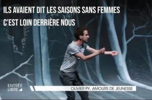 Cette vidéo fait un bref rappel d’engagements politiques et de déclarations d’hommes du milieu du théâtre. Et, immédiatement après, des chiffres dénoncent la faible présence des femmes dans les instances de direction et parmi les auteur.e.s du spectacle vivant. Une video qui se termine par ce constat : moins de 20 % de l’argent de l’Etat va aux femmes artistes.