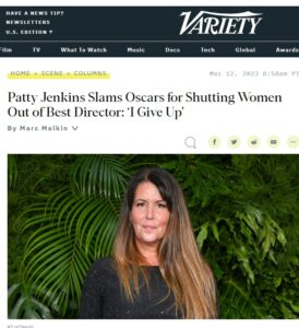Aucune femme n’était nommée pour l’Oscar de la meilleure réalisation cette année. « J’abandonne » a lâché Patty Jenkins la réalisatrice de Wonder Woman. Les progrès sont très lents...