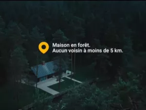 Le clip vidéo s’ouvre sur l’image d’un homme inquiétant en train d’aiguiser sa hache, seul, dans sa maison isolée près d’un lac (d’où le nom de la pub : “La maison du lac”), quand une jeune femme blonde toque à sa porte. À la fin, constatant que le sol est entièrement plastifié, elle lui demande : « Ah, tu vas faire de la peinture ? ». Il referme la porte, sa hache planquée dans le dos. L’annonce se conclut avec la tagline suivante : “Maison en forêt. Aucun voisin à moins de 5 km”. Sous-entendu, grâce à l’outil de localisation 3D “révolutionnaire” de Bien’Ici, « visualiser non seulement le bien immobilier convoité, mais aussi tout ce qui l’entoure »… et vous trouverez une habitation perdue dans les bois vous permettant de zigouiller des jeunes femmes.
