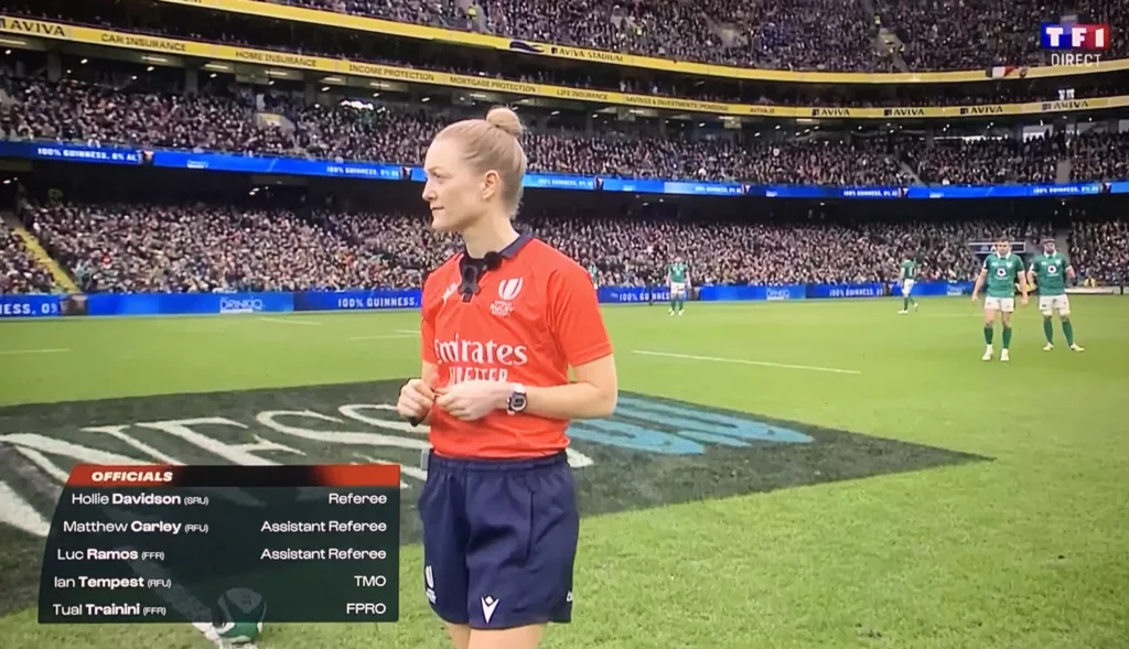 Qu’un homme arbitre un match de rugby féminin, c’est du déjà vu. Mais qu’une femme arbitre, incarne l’autorité, lors d’un tournoi masculin de l’ampleur des Six Nations est une première. Hollie Davidson a marqué l’histoire du tournoi européen en arbitrant le match Irlande-Italie, qui s’est joué samedi 14 février 2026 à Dublin. À 33 ans, cette ancienne joueuse écossaise n’en est pas à son premier plafond de verre brisé dans le rugby.
