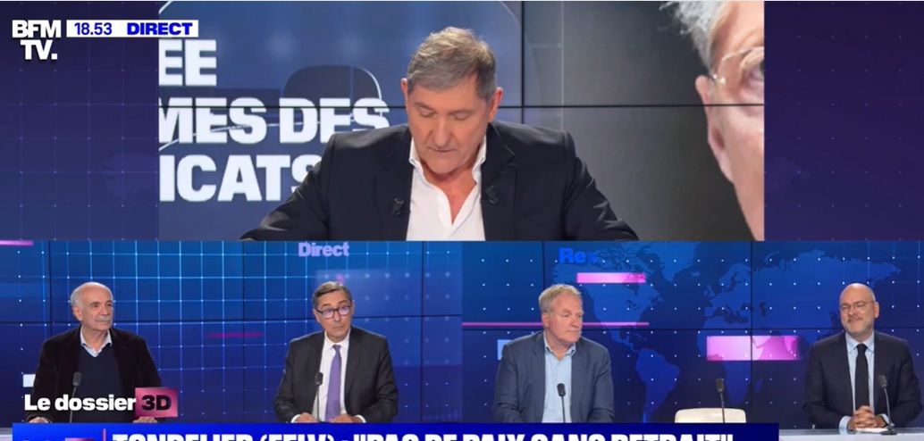 « Votre question est très inconvenante ! » sur le plateau de BFM TV ici à 1’50, mardi 4 avril, François Hommeril, Président confédéral de la CFE-CGC recadre l’animateur Yves Calvi. Ce dernier vient de lui demander s’il a « calmé » Sophie Binet. La nouvelle Secrétaire générale de la CGT a annoncé son intention de mettre fin à la rencontre prévue le lendemain entre l’intersyndicale et la Première ministre, si la réforme des retraites n’était pas retirée. Sur le plateau d’Yves Calvi ce soir-là, il n’y a que des hommes, ce qui donne à la question du journaliste un parfum encore plus sexiste. La réponse impeccable de François Hommeril coupe court à l’activation du cliché de la femme, forcément hystérique, qu’il faudrait calmer. L’épisode n’est pas sans rappeler une récente sortie médiatique du ministre de l’Intérieur qui avait été recadré par Apolline de Malherbe sur la même antenne (Lire : Nouvelle sortie sexiste de Gérald Darmanin)