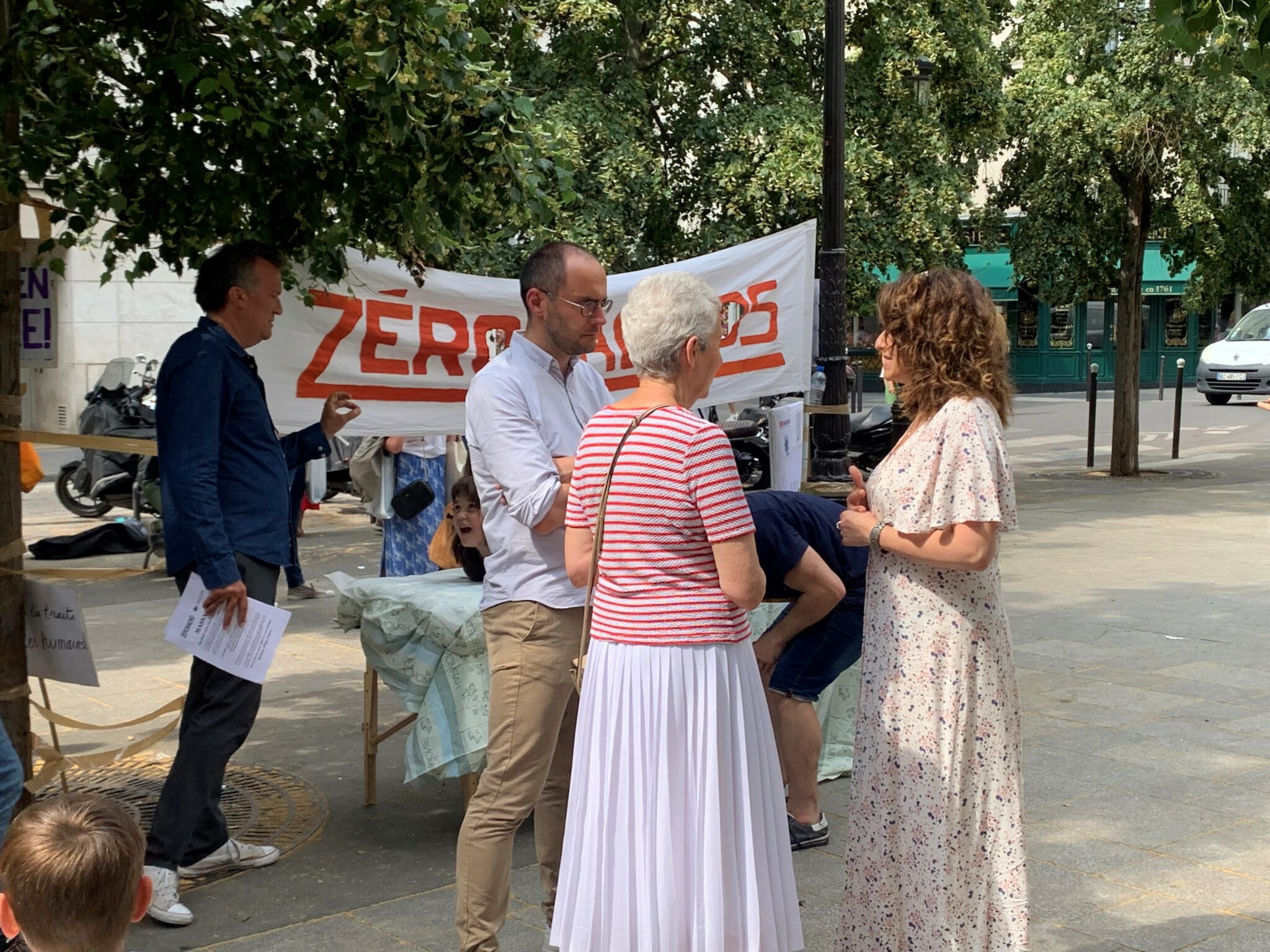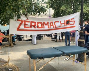 « Ici, on masse gratis et sans finitions », « Dans un monde d’égalité, il n’y aura pas de prostitution » ou encore « Féministes contre le système prostituteur »… voici ce que l’on pouvait lire ce samedi 17 juin, place de Levis dans le 17ème arrondissement de Paris. À l’origine de ces messages, l’association ZéroMacho. Engagé contre le système prostitutionnel depuis une dizaine d’année, ce collectif, composé uniquement d’hommes, a mis en place une opération « massage » afin de dénoncer la véritable activité de prétendus salons de massages, qui sont en réalité des lieux de prostitution. Tantôt intrigués, tantôt réticents, mais dans l’ensemble volontaires, les passants se sont prêtés au jeu et ont pu se faire offrir un massage gratuit, dans la rue, par des masseurs et masseuses professionnel.les de la Fédération Française des Massages Bien-Être, qui pâtissent, eux aussi, de l’amalgame entre leur profession et prostitution. Le slogan de ZéroMacho : « Pour la fête des Pères, offrez un vrai massage ! »